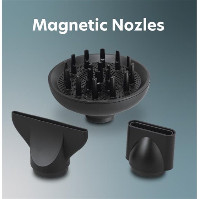 Συνοδεύεται από δύο μαγνητικούς συγκεντρωτές αέρα για ακρίβεια στο χτένισμα και φυσούνα για styling με όγκο.