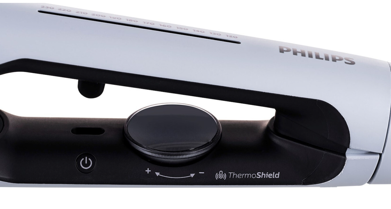 Απολαύστε φορμάρισμα με λιγότερη φθορά από τη θερμότητα με την ισιωτική μαλλιών Philips με τεχνολογία ThermoShield. Ο αισθητήρας θερμοκρασίας προστατεύει τα μαλλιά και προσφέρει επαγγελματικό αποτέλεσμα σε κάθε χρήση. Οι κεραμικές πλάκες με αργανέλαιο γλιστρούν απαλά, ενώ οι αιωρούμενες πλάκες κατανέμουν ομοιόμορφα τη θερμότητα για ασφαλές και αποτελεσματικό styling.
