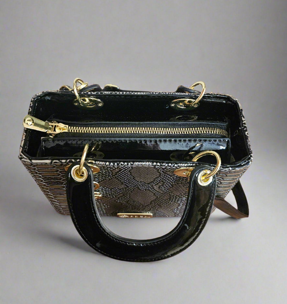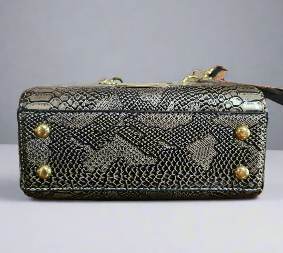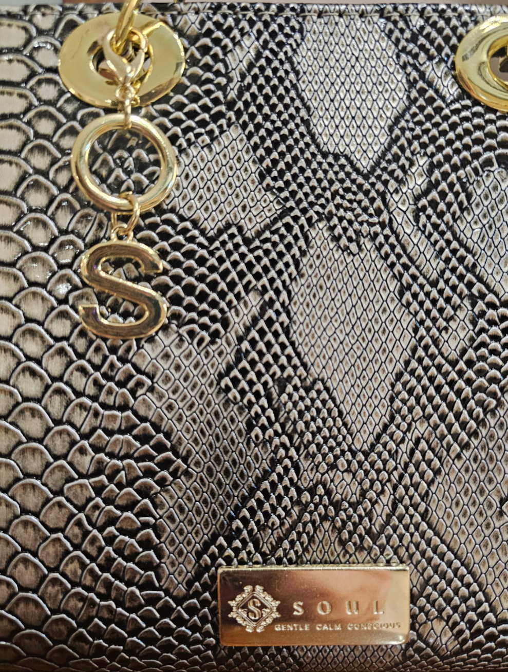 Η SOUL Lure σε μαύρο-γκρι snake είναι η απόλυτη επιλογή για γυναίκες που αγαπούν το statement στυλ με διαχρονική δυναμική. Η ανάγλυφη snake υφή, σε σκούρες αποχρώσεις με διακριτική γυαλάδα, συνδυάζει μυστήριο και κομψότητα σε ένα αξεσουάρ που τραβάει τα βλέμματα.