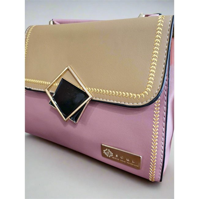 SOUL Hemen Ροζ Τσάντα Χιαστί με Μπεζ Καπάκι