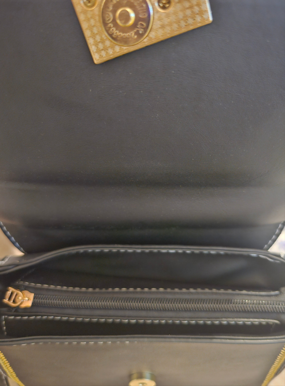 Κεντρική θήκη με φερμουάρ και κομψό καπάκι που ασφαλίζει με μεταλλικό κούμπωμα.