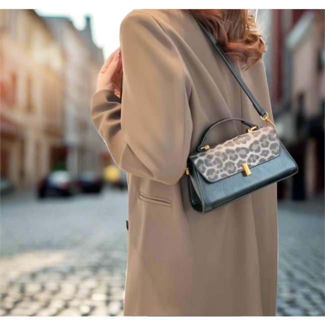 Soul | Γυναικεία Τσάντα Χιαστί σε Μαύρο με Καφέ Λεοπάρ Καπάκι