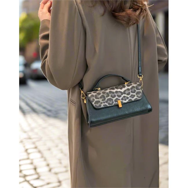 Soul | Γυναικεία Μικρή Τσάντα Χιαστί σε Μαύρο με Λεοπάρ Καπάκι