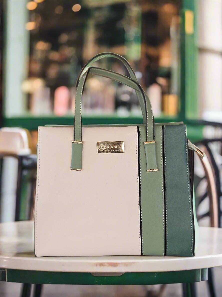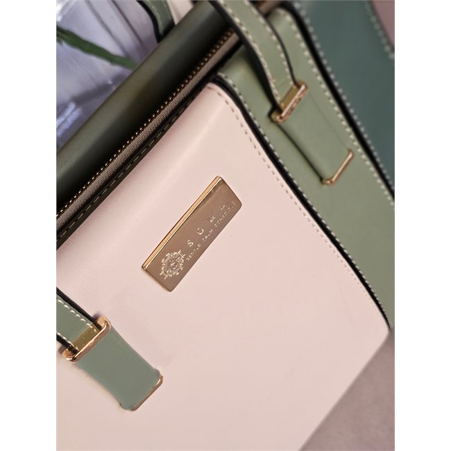 Γυναικεία τσάντα χειρός σε πράσινο, πράσινο πιο ανοικτό και μπεζ
