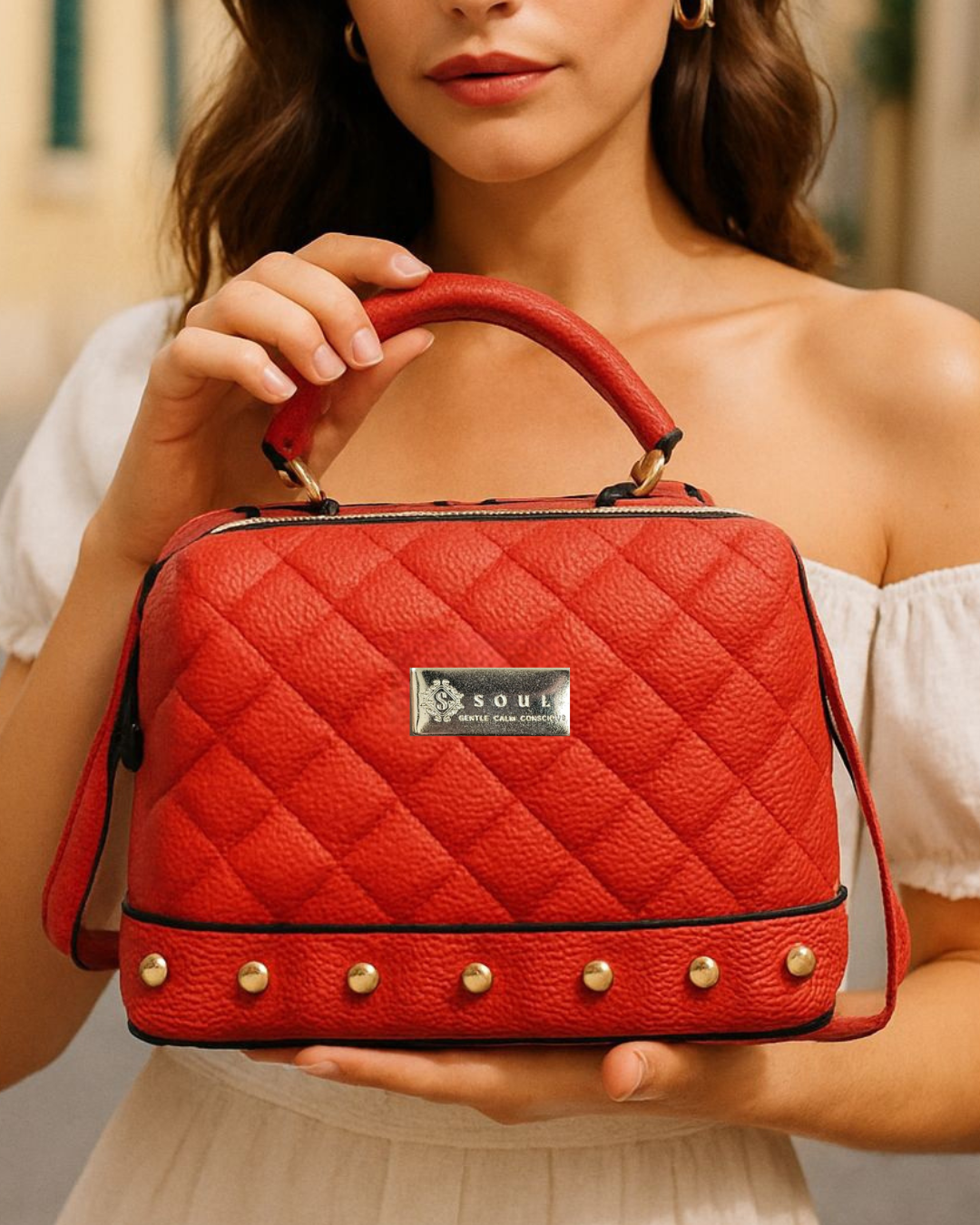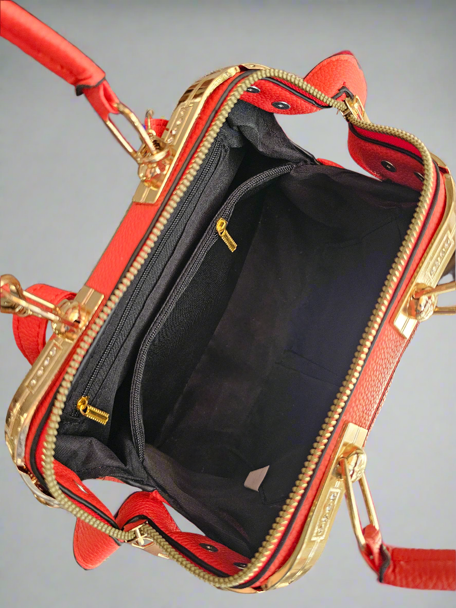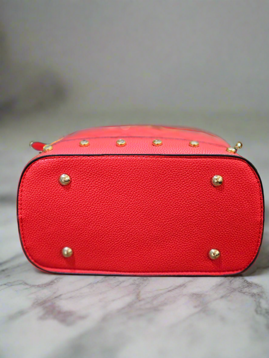Η νέα τσάντα της Soul σε φωτεινό περσικό κόκκινο με μεταλλικά χρυσά στοιχεία και στρας φέρνει τη λάμψη που χρειάζεται κάθε σου εμφάνιση.