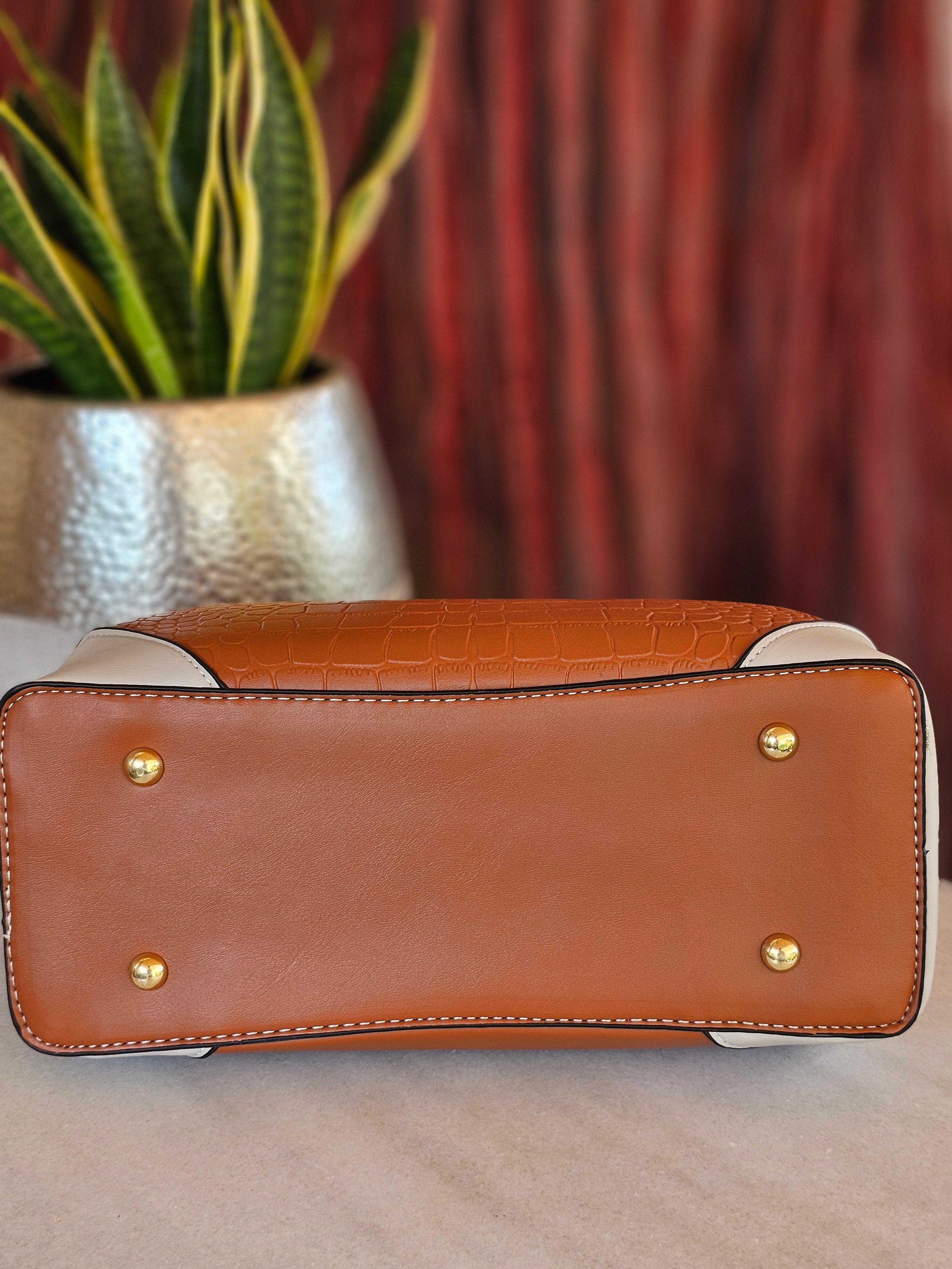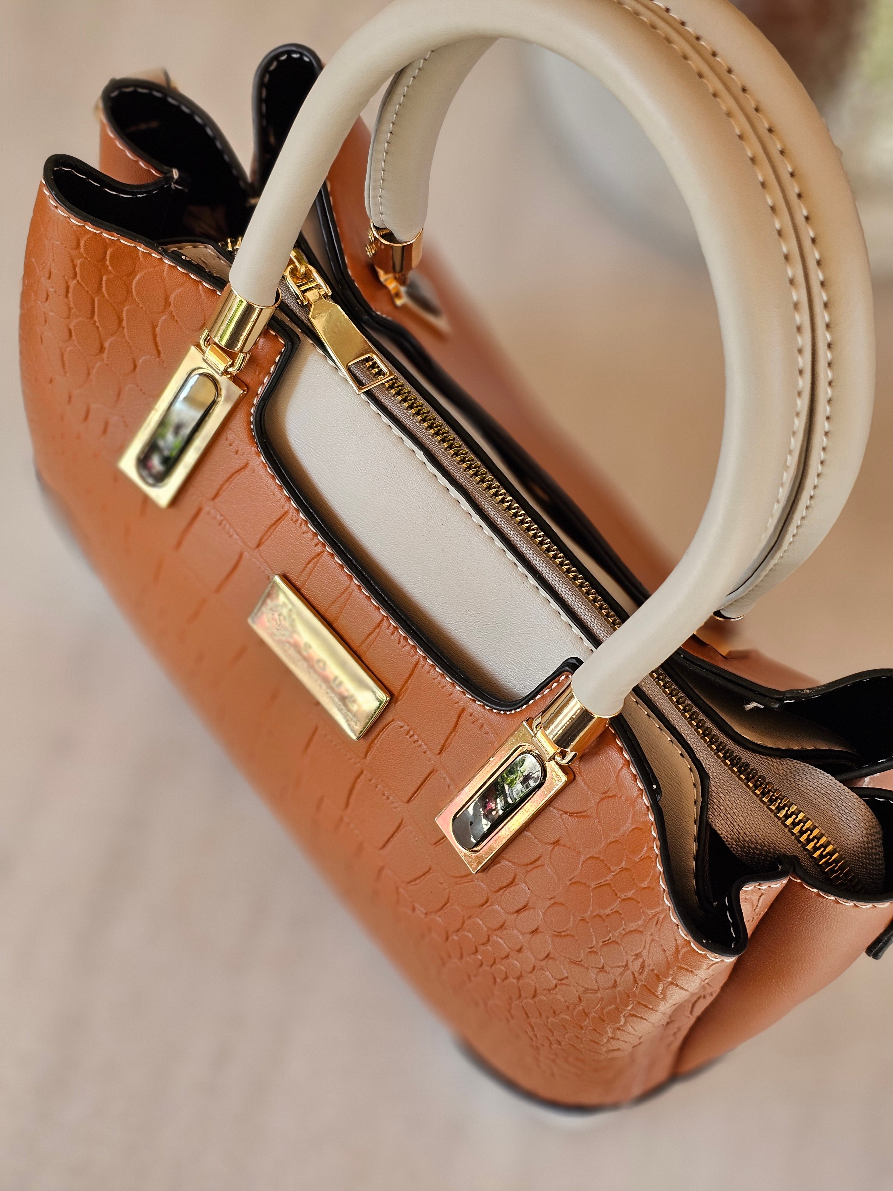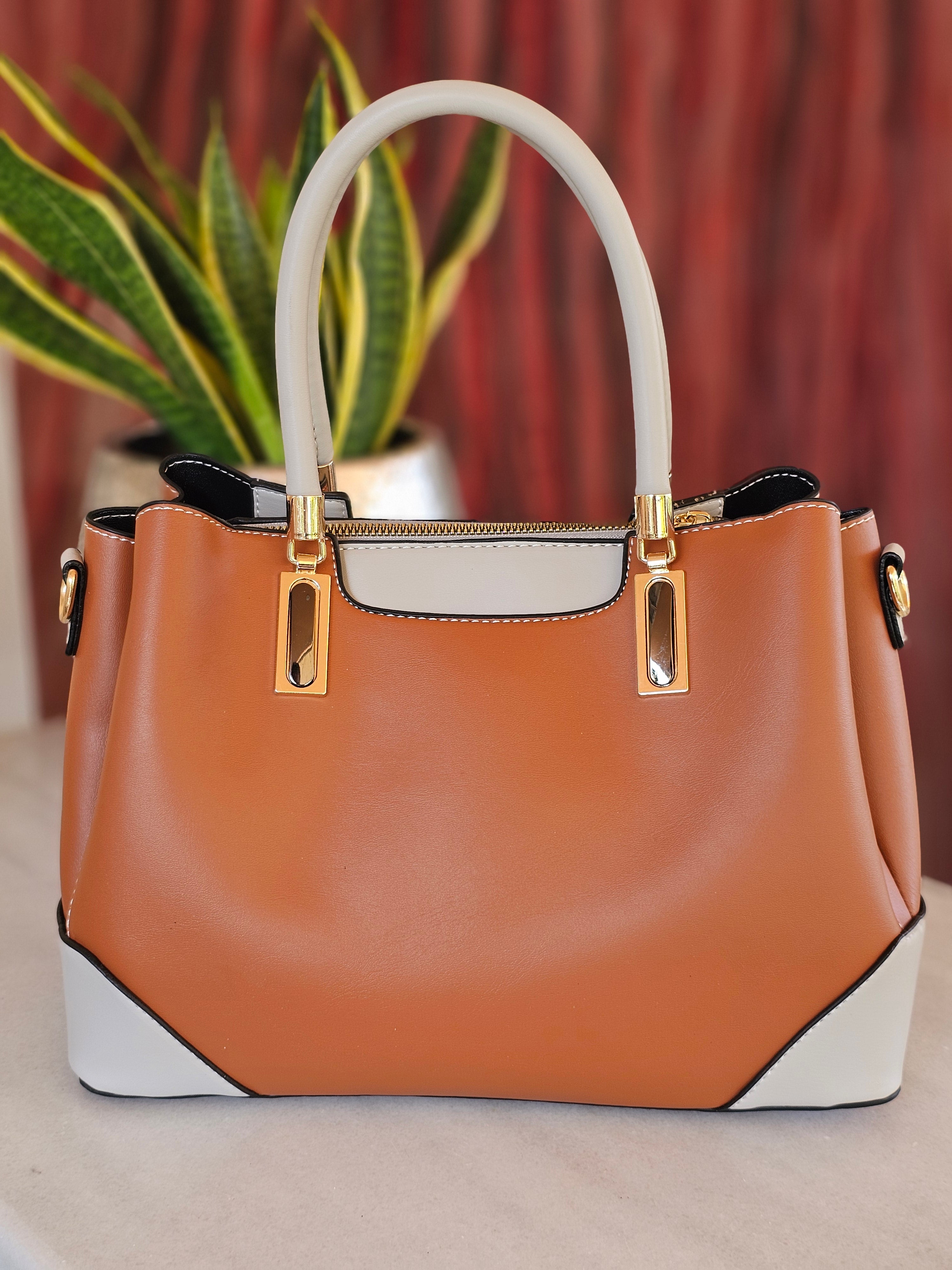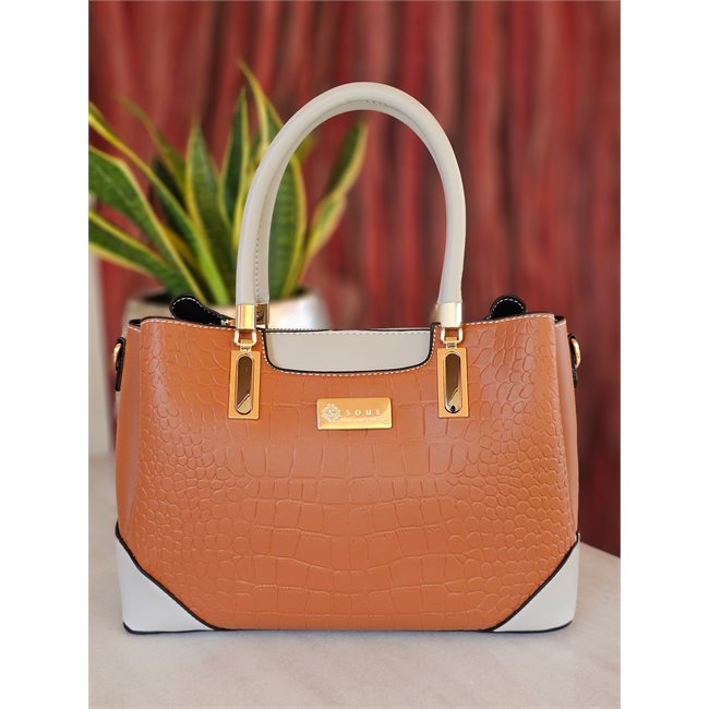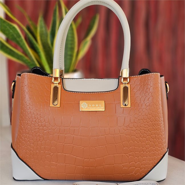 Γυναικεία τσάντα χειρός σε ταμπά και λευκό χρώμα