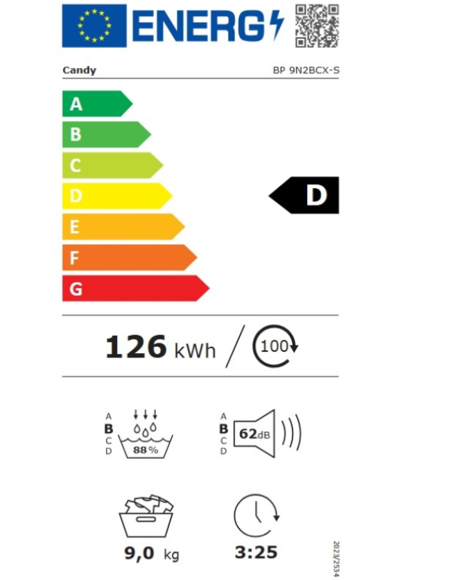 Κατανάλωση ενέργειας ανά κύκλο 1,26 kWh