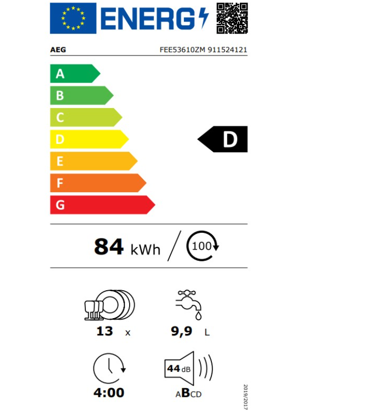 Κατανάλωση ενέργειας: 84 kWh / 100 κύκλους